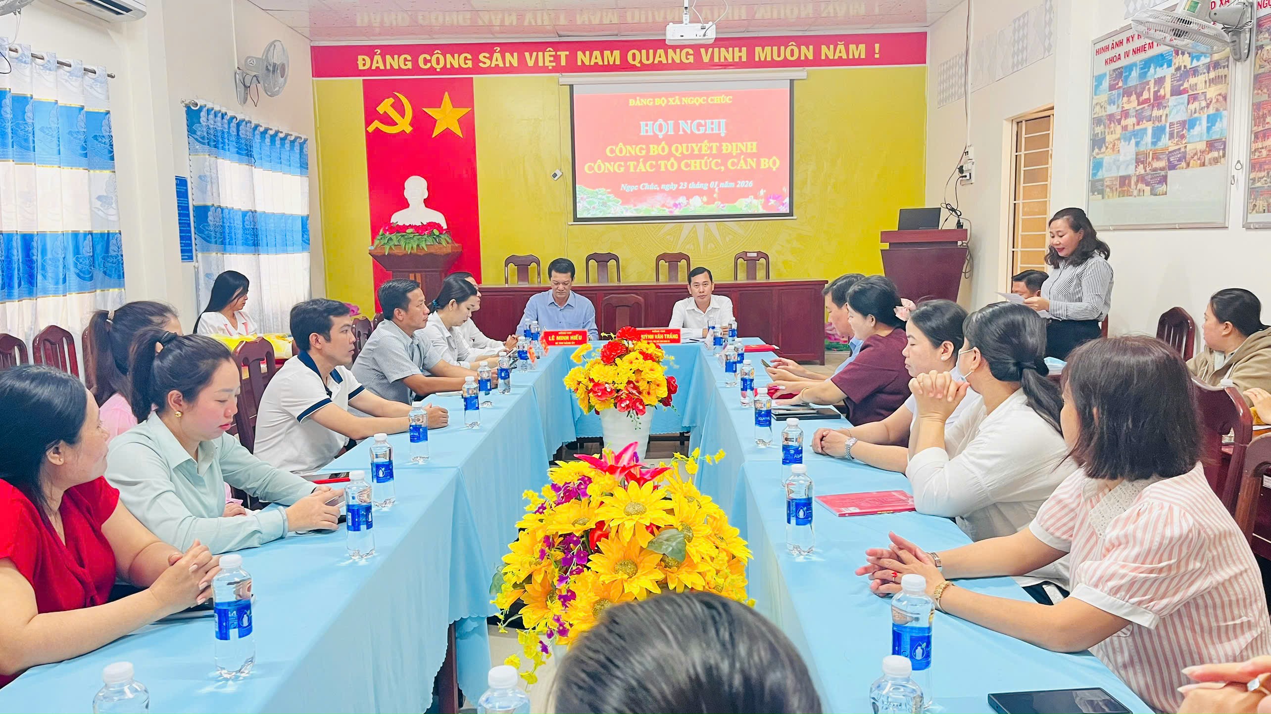Tại hội nghị, Ban Thường vụ Đảng ủy xã đã công bố Quyết định hợp nhất Chi bộ Trạm Y tế xã Ngọc Chúc; Quyết định chỉ định Chi ủy Chi bộ gồm 5 đồng chí. Chi bộ hiện có 22 đảng viên. Đồng chí Nguyễn Văn Te được chỉ định giữ chức vụ Bí thư Chi bộ, đồng chí Nguyễn Thị Anh Thư được chỉ định giữ chức vụ Phó Bí thư Chi bộ Trạm Y tế xã Ngọc Chúc.