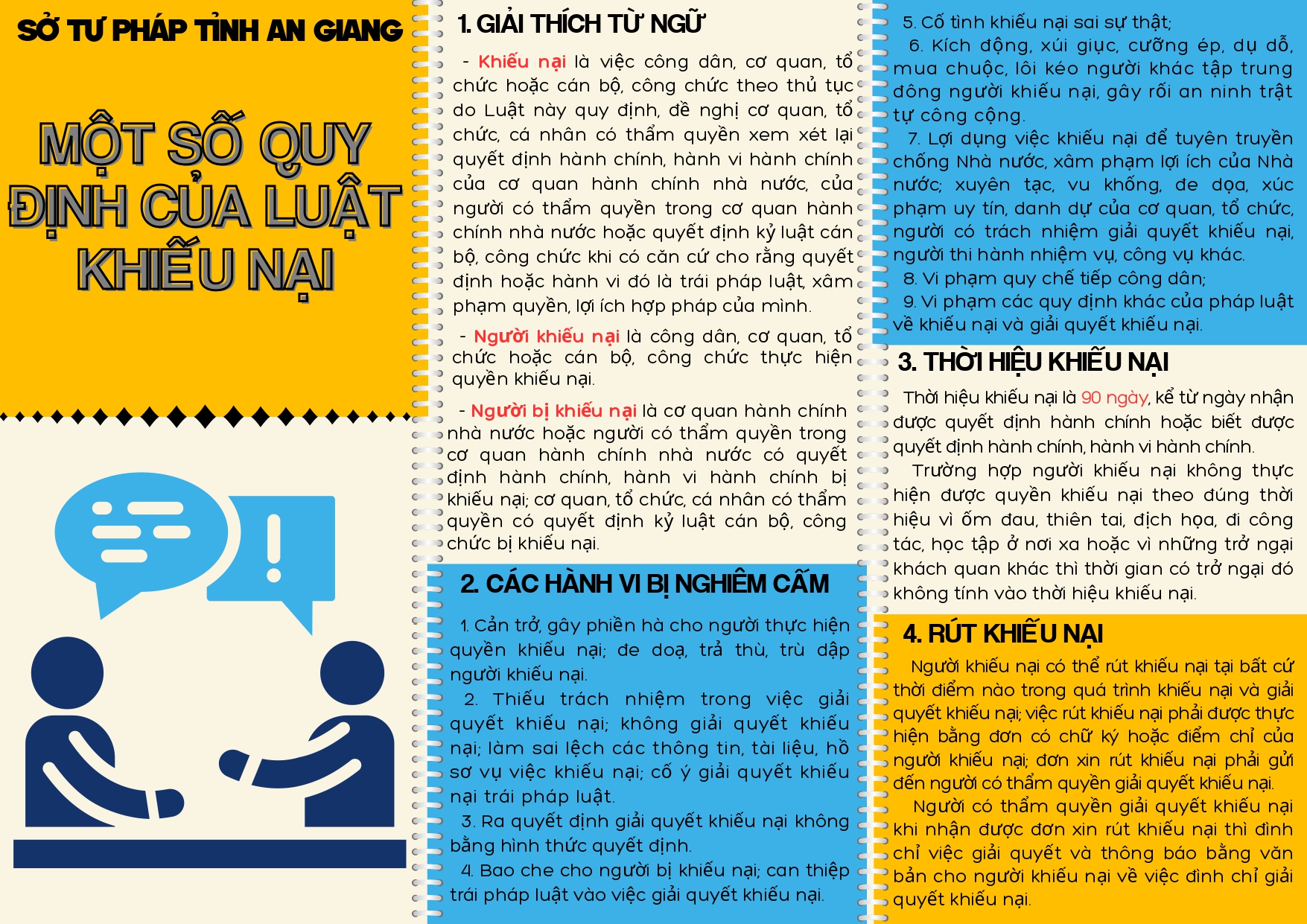 Thực hiện Công văn số 46/STP-PBGDPL ngày 06/01/2026 của Sở Tư pháp tỉnh An Giang về việc phổ biến tài liệu điện tử tuyên truyền, phổ biến các quy định pháp luật về Khiếu nại, Tố cáo nhằm góp phần nâng cao nhận thức, hiểu biết pháp luật cho cán bộ, công chức, viên chức và Nhân dân trên địa bàn xã, Ủy ban nhân dân xã thông tin đến các phòng, các ngành đoàn thể, cán bộ, công chức, viên chức xã và Nhân dân trên địa bàn xã quan tâm theo dõi, chủ động tìm hiểu các quy định của pháp luật về Khiếu nại, Tố cáo; thực hiện quyền khiếu nại, tố cáo đúng trình tự, thủ tục, góp phần xây dựng chính quyền cơ sở trong sạch, vững mạnh.