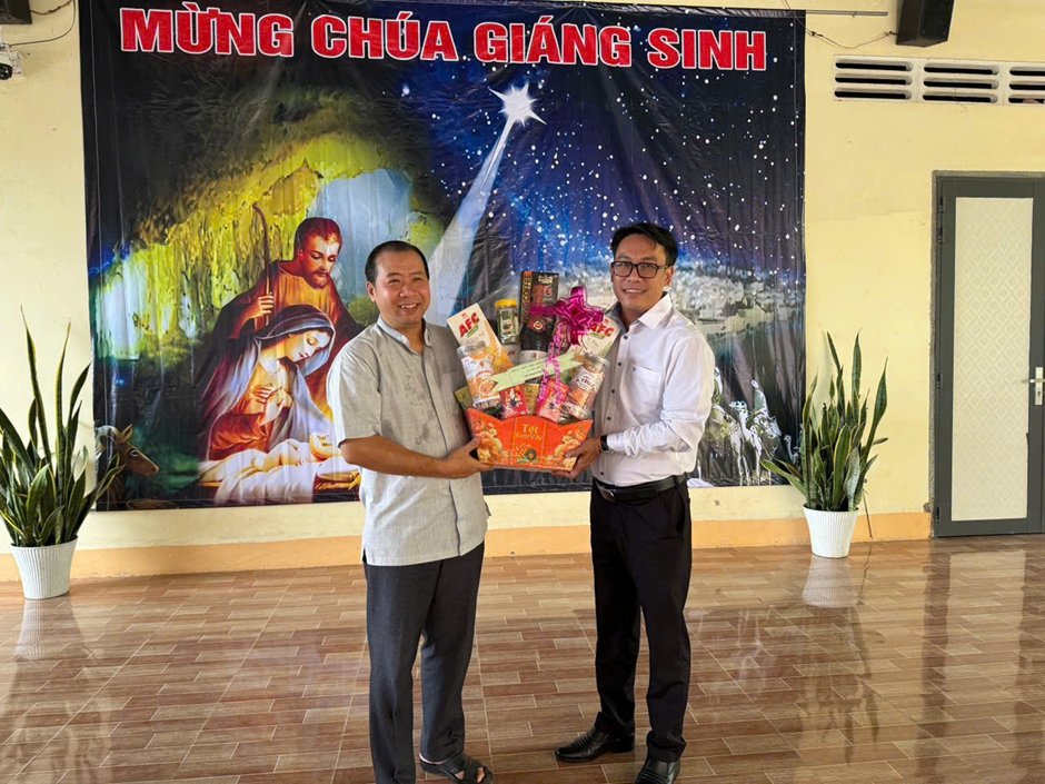 Tại Giáo họ Ngọc Thuận, các đồng chí Huỳnh Thị Diễm Trang, Phó Bí thư Thường trực Đảng ủy – Chủ tịch HĐND xã và đồng chí Lý Thành Luân, Phó Bí thư Đảng ủy – Chủ tịch UBND xã đại diện lãnh đạo xã thăm hỏi, chúc mừng và trao quà đến linh mục, hội đồng mục vụ và bà con giáo dân.