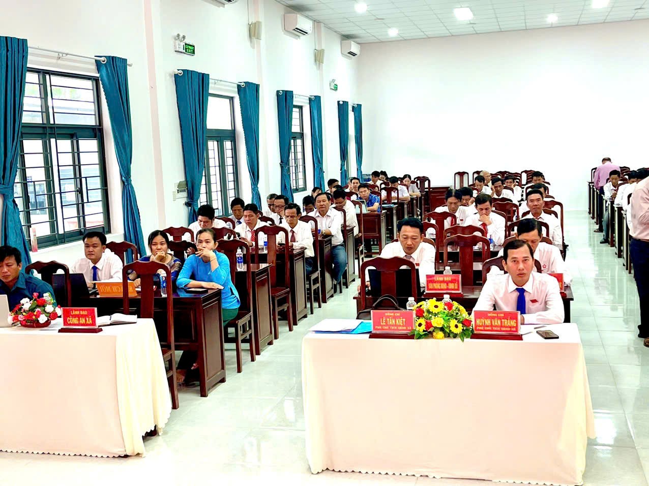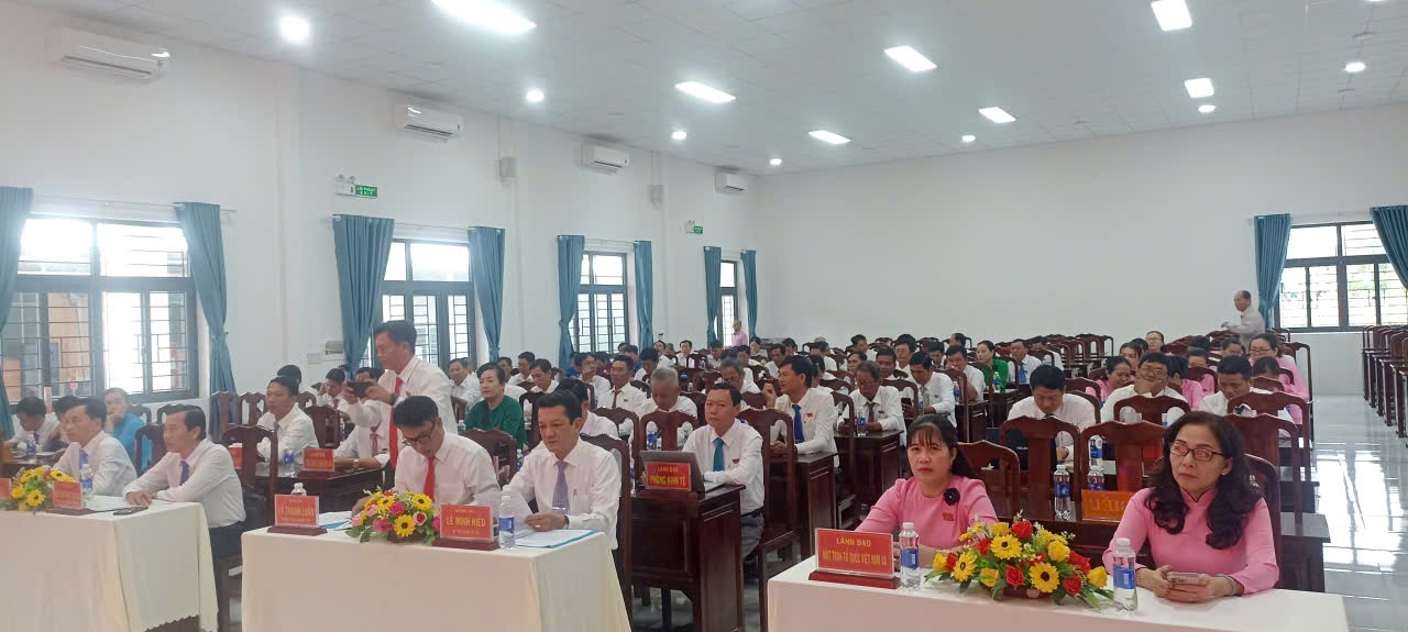 Đoàn chủ tọa kỳ họp: Đồng chí Huỳnh Thị Diễm Trang, Phó Bí thư Thường trực Đảng ủy - Chủ tịch HĐND xã; đồng chí Lê Thanh Xuân, Ủy viên BTV, Phó chủ tịch HĐND xã.