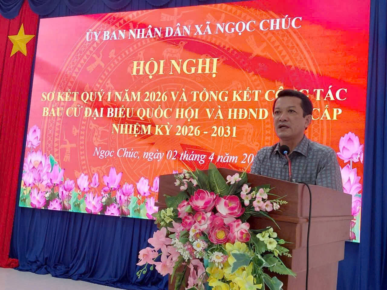Sáng ngày 02/4/2026, tại Hội trường UBND xã Ngọc Chúc, UBND xã tổ chức Hội nghị sơ kết công tác quý I năm 2026 và tổng kết phong trào thi đua thực hiện công tác bầu cử đại biểu Quốc hội khóa XVI và đại biểu HĐND các cấp nhiệm kỳ 2026–2031.