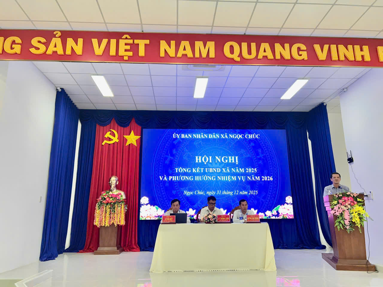 Ngày 31/12/2025, được sự thống nhất của Thường trực Đảng ủy xã Ngọc Chúc, Ủy ban nhân dân xã Ngọc Chúc tổ chức Hội nghị tổng kết công tác năm 2025, triển khai nhiệm vụ trọng tâm công tác năm 2026.